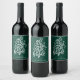 Elegant, modern holiday wine labels featuring the phrase "All is calm, all is bright" in a white, hand-lettered script with starburst accents against a green background. Personalise the holiday wine label by adding your name or custom text.