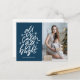 Hand-Lettered All Is Calm All Is Bright Navy Photo Holiday Postcard