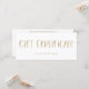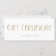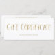 This stylish, modern gift certificate features a white background, with whimsical faux gold hand lettered typography.