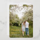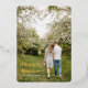 Welcome the joy of Easter with this beautiful Hand-Lettered Gold Script Photo Easter Foil Holiday Card. This stunning card features a beautiful romantic couple walking on a farm full of blossoming trees and foliage. Customise this card with your own photo and name to make it a truly one-of-a-kind personalised greeting. Perfect for sending Easter wishes to your loved ones, this card is sure to make a lasting impression.