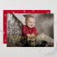Modern Christmas photo card featuring "Merry & Bright" displayed in a hand-lettered gold foil script overlaying your horizontal photo. Personalise the front of the foil merry and bright card with your family name and the year. The card reverses to a festive red and white star pattern.
