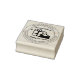 This hand lettered "Merry Christmas" rubber stamp features a gift with a cat, custom family name and address.