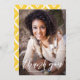 Stylish graduation thank you card featuring white hand-lettered calligraphy with yellow ikat diamonds pattern. This flat card will be perfect for wedding thank you card or graduation thank you card. You can customise the photo, texts, and back pattern. A postcard version is also available.