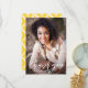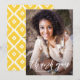 Stylish graduation thank you card featuring white hand-lettered calligraphy with yellow ikat diamonds pattern. This flat card will be perfect for wedding thank you card or graduation thank you card. You can customise the photo, texts, and back pattern. A postcard version is also available.