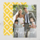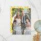 Stylish photo thank you card featuring white hand-lettered calligraphy with yellow ikat diamonds pattern. This flat card will be perfect for wedding thank you card or graduation thank you card. You can customise the photo, texts, and back pattern. A postcard version is also available.