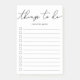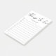 Chic personalized post-it note pad in crisp black and white features "things to do" at the top in hand lettered script typography. Personalize with your name or choice of text beneath, or leave blank if desired. 11 lines with checkboxes help you keep track of all your important tasks!