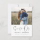Modern and Elegant Photo Save the Date Wedding Card. The save the date invitation card includes white Hand Lettered typography and chic and simple design on a white background that you can add your customised engagement photograph picture to.
