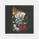 Original vector art of a hand holding playing cards that are on fire. With gold coins, dice, 8 Ball, Ribbon and a rose.