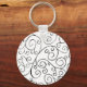 Hand-Painted Black Curvy Pattern on White Key Ring