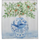 A Chinese, Blue and White Ginger Jar features a sizable Fish with pretty sizable fins as well. Planted in the Ginger Jar is a nice Orange Tree with several of the citrus fruits already growing. Orange and blue are always a classic combo.