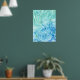 This hand painted abstract floral artwork features delicate flower shapes in cool shades of turquoise, mint green, and icy blue. The organic flow of petals and leaves creates a calm and refreshing visual atmosphere - ideal for nature-inspired modern interiors.
