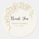 Featuring hand-painted gold leaves and flowers, this wedding sticker has a whimsical design with customisable black and gold typography on a cream paper background.