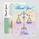 Celebrate a cosmic milestone with a touch of hand-painted elegance. “Hand-Painted Libra Birthday Thank You,” card features a dreamy, watercolor sky that serves as the backdrop for a stunning, impressionist Libra, the Scales. Accented with shimmering gold glitter and finished with deep navy typography, the design evokes a sense of nighttime wonder and celestial beauty. It’s more than a note; it’s a keepsake that honors “your little Scales’ first journey around the sun.”