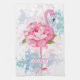 Hand painted pink flamingo tea towel