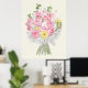 hand painted Pink rose and yellow daisy bouquet wa Poster