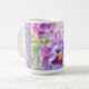 Hand Painted Purple Iris Irises floral Latte Mug. A glorious watercolor floral design. Designed from my original watercolor paintings, that I painted from my own flower garden.