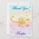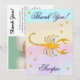 Celebrate a cosmic milestone with a touch of hand-painted elegance. “Hand-Painted Scorpio Birthday Thank You,” card features a dreamy, watercolor sky that serves as the backdrop for a stunning, impressionist Scorpio, the Scorpion. Accented with shimmering gold glitter and finished with deep navy typography, the design evokes a sense of nighttime wonder and celestial beauty. It’s more than a note; it’s a keepsake that honors your “little scorpion’s” first journey around the sun.