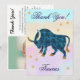 Hand-Painted Taurus Birthday Thank You Card