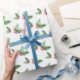 Hand Painted Watercolor Pine Wreath, Red Berries Wrapping Paper