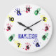 This adorable clock will look great anywhere! Features different handprints at each of the numbers in vibrant colours and personalised with your choice of names. Great for a child's room, for an art teacher and more!