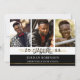 Three thin faux metallic gold lines accent the hand-lettered title GRADUATE and graduating year. The black block of colour on the front is editable by changing the background colour to coordinate with your photos, school colours or graduation party theme colours. Showcase four of your graduate's senior pictures (three on the front) and one on the back along with your graduation party invitation details.