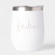 Get the party started with these beautiful personalised wine tumblers that are perfect for bachelorette parties, bridesmaids, or any occasion! Design features a name in neutral tan beige handwritten style cursive script typography.
