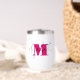 Keep your drink refreshingly cold with this stylish stainless steel wine tumbler featuring your first name in chic lettering over your first or last name large initial. Great to sip hot drinks, too!