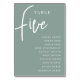 Hand Scripted Table FIVE + Guest Names Number