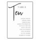 Simple and chic table number cards in classic black and white make an elegant statement at your wedding or event. Design features "table [number]" in an eyecatching mix of classic serif and handwritten script lettering, with individual guest names beneath. Design repeats on both sides. Individually numbered cards sold separately; order each table number individually from our collection.