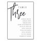 Hand Scripted Table THREE + Guest Names Number