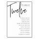 Hand Scripted Table TWELVE + Guest Names Number