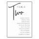 Hand Scripted Table TWO + Guest Names Number