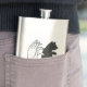 The product is a good size and came exactly as it was pictured. The lid is not attached to the flask, which could be dangerous on drunken nights... The print came out surprisingly well and looks very sharp. Would definitely recommend.