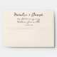 A retro modern hand written bright black and white wedding envelope. Which features bold whimsical bride and groom's names in black and creamy background colour. And personalised return address . Which suits the whole wedding suite.