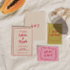 Simple and stylish retro colourful wedding guest info details. With funky lime green background and red magenta hand written text layout and hand drawn frame. All the info are customisable as website, transportation, accommodation . Grab it along with other products from this classy hand made retro wedding suite.