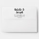 A retro modern hand written bright black and white wedding envelope. Which features bold whimsical bride and groom's names in black and white background colour. And personalised return address . Which suits the whole wedding suite.
