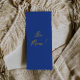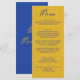 A colorful retro funky modern blue and yellow written menu . And hand drawn yellow and blue. Perfect and matching with the whole suite. wedding dinner menu. Which features chic template design of boho vintage yellow background and blue typography.