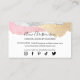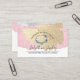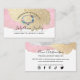 © 2023 Socialite Designs Inc. & LICENSORS. This elegant jewellery and beads business card design incorporates a gold and pink background, jewellery design elements (can be deleted and your own logo added), and curved text to catch the eye. An elegant business card that can be used for many types of jewellery designers and repurposed jewellery business.