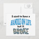 I Used to have a handle on life, too... You can customise these for the over-achiever, type triple A personality or workaholic that just hasn't grasped the concept of multitasking, or perhaps things just got out of hand. Just add humour into the mix and everything is cool...