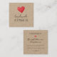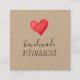 Add a personal touch to your packaging with these charming square handmade business cards printed on your choice of paper such as premium Kraft paper. Featuring a simple scribbled red heart design (replace with your own design if you want), these cards are perfect for small handmade businesses that want to highlight authenticity and creativity. The front includes a stylish “Handmade” line, personalized with your name, while the back provides a clean, organized layout for your business details. There is space for your name, business name, and up to five additional lines — ideal for your website, email, phone number, social media, or address.