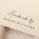 Rubber stamp featuring the text "Handmade by" in an elegant handwritten script font and your name below.