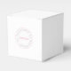 An elegant "Handmade by" gift box in white and pink, with a sewing button design.