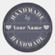 Stitched business sticker indicating the product is handmade. Customise with your own name.