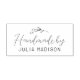 A sweet and simple product stamp for all your creative needs! This self-inking stamp is decorated with a hand-drawn botanical sprig at the top of the design, it has two circular flower buds and three little leaves. Below, "Handmade by" is written in beautiful script lettering. At the bottom, your name, artist name, social media handle, website, or business name is printed in clear capital letters. A great accessory for any creative! This is the self-inking rubber stamp - choose the housing and ink colours according to your preference! A wooden version of this stamp is available in my store.