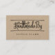Perfect business card for tailors, seamstress, sewing businesses, or individuals making handmade handcrafted goods, products. Design features "Handmade By" with the letter "d" created to look like a ribbon bow. "Handmade by" displayed in a stylish handwritten style text pairing. Personalise with your name, contact information, website, and social media info. Note: colours can be changed in suit your design preference and brand image. Artwork by Moodthology.