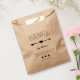 Rustic chic kraft bags make beautiful packaging for your handmade, artisan or craft business. Design features two lines of custom text in black handwritten style block and script lettering, accented with a heart and arrow illustration. Personalise with two lines of contact information and your social media username. Shown with three social media icons.
