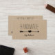 Rustic brown kraft loyalty business cards for your handmade, artisan, or craft business feature two lines of custom text on the front in handwritten style block and script lettering, bisected by a black heart and arrow illustration. Add four lines of custom text to the reverse side in matching fonts, along with your custom loyalty offer and six punch outs.