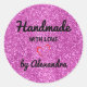 Modern "handmade with love" sticker with a black font on a rainbow glitter background embellished by a cute heart. Customise text