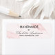 A label for your handmade products or art. Personalise and add your name and website address. Blush pink marble stone print as background, black text.