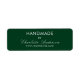 A label for your handmade products or art. Personalise and add your name and website address. Emerald green background, white text. You can change the background colour and the text colour to match your brand.